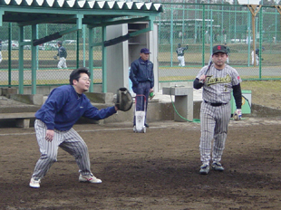 | ノッカー上西と新キャップ涌井 | 「ちゃんとここに投げてこいよ〜!」 | |