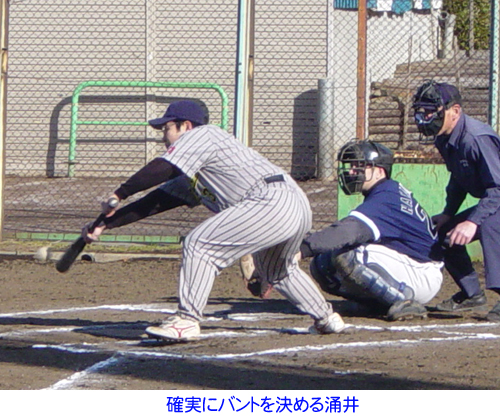 試合は初回、先頭の宇佐美が四球で出塁。2番GM菊地が中前安打で続き、3番キャップ涌井がこの2人を送る。今期初打席トリオの3人で一死二三塁というチャンスを演出してくれる。しかし今期の打の柱と期待される小川、坂内がこれを還せずに終わってしまう。ちょっとイヤな雰囲気。